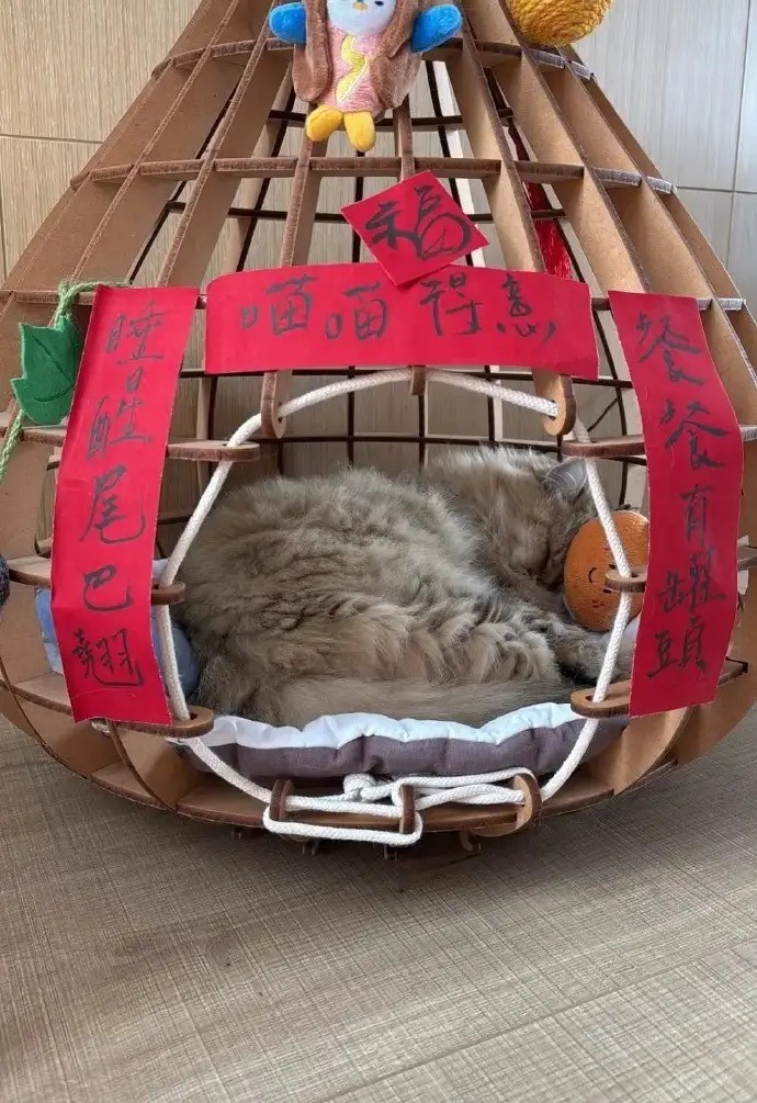 近日,舒淇晒出了自己给猫咪的猫窝贴出的对联祝福,她写道:“睡醒尾巴翘,餐餐有罐头,喵喵得意”非常有舒淇的特色。